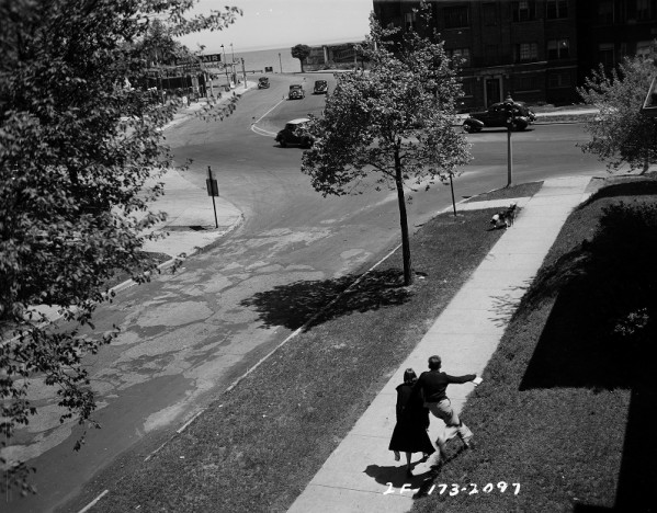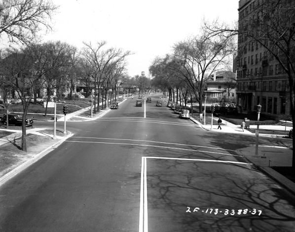 Here are two views looking east, as Devon becomes Sheridan (the first in 1937, the second in 1943):